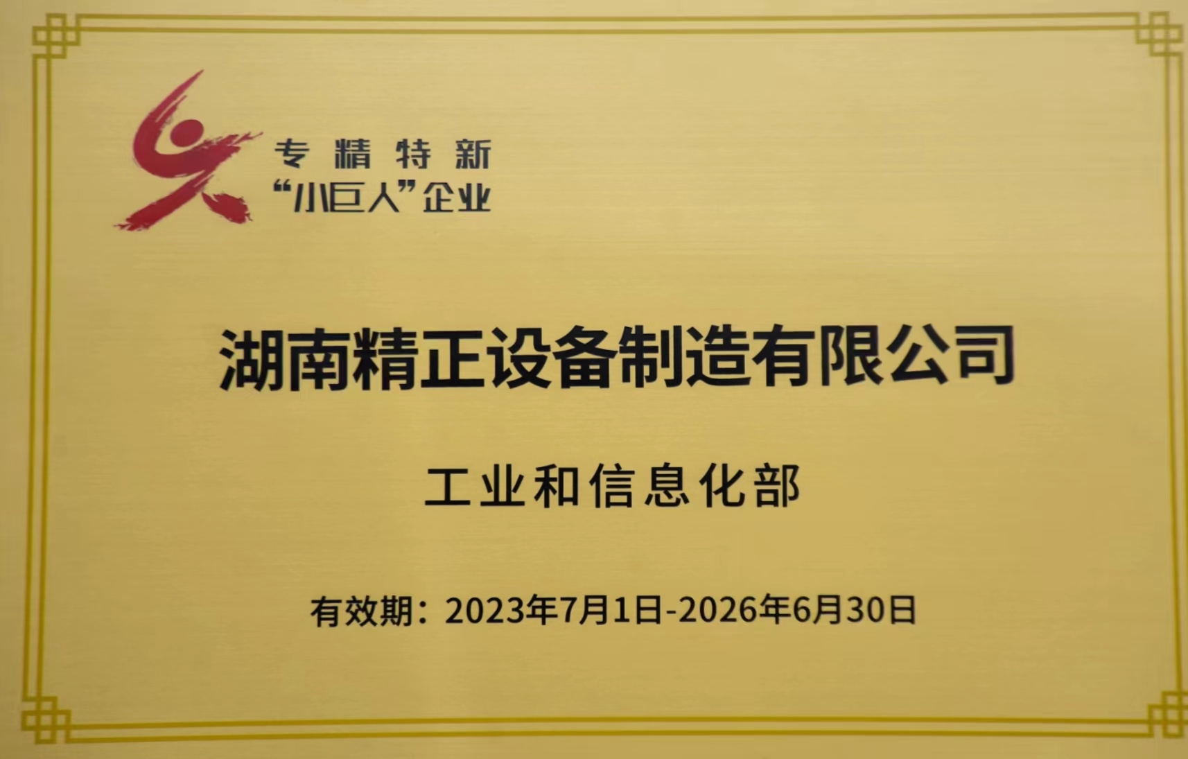 2024年1月9日,湖南精正榮獲國家工信部授予的專精特新“小巨人”企業